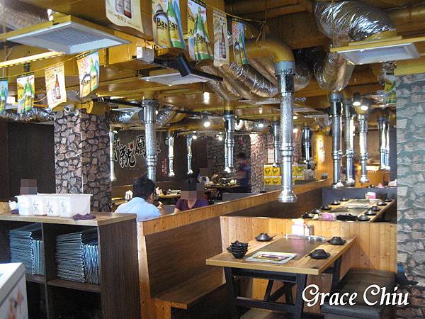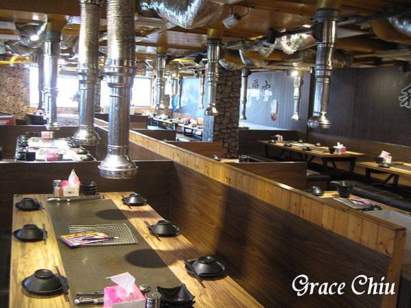進入餐廳看到了寬敞舒適的用餐空間,一支支銀色的管子是排煙管,用餐期間看到排煙管的吸煙效果還不錯,用餐完畢身上沒有殘留過重的燒烤燻味.