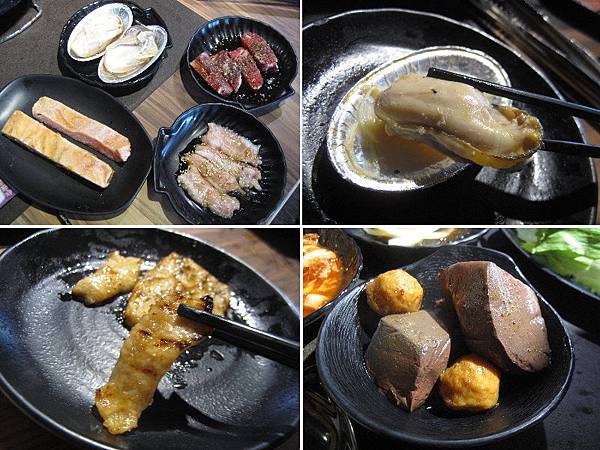 第一輪先上了店家特別推薦的食材,有檸檬雞腿排/嫩肩牛/照燒牛/松阪豬/牛舌/豬排/牛排/XL去殼大牡犡(限點一次)/漢堡排等等,澎湃好料很快就擺滿桌.