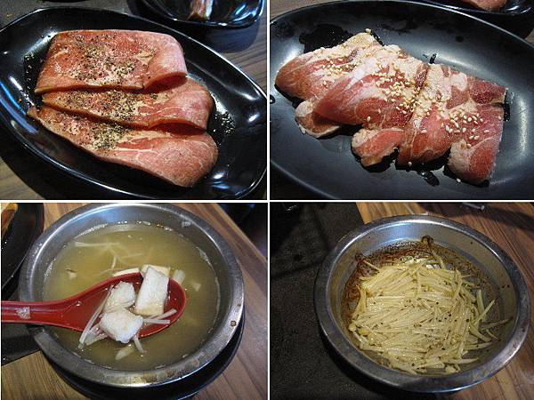 去骨牛小排/羊五花/鮮菇湯/奶油金針,菜單裡除了燒烤生鮮食材也點的到熱食,加了不同菇類的鮮菇湯湯頭清甜,奶油金針需要放在烤爐上加熱燜煮,這份被我們加熱過頭湯汁收的比較乾,吸收了濃濃奶油味的金針菇香氣撲鼻.
