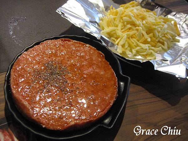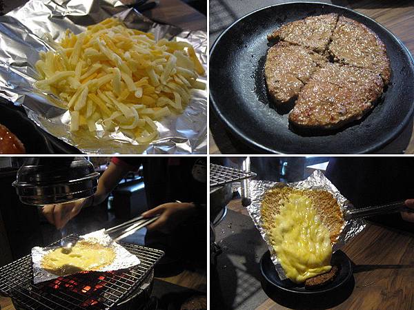 不只烤漢堡肉需要技巧,連加熱起司絲也很需要功夫,起司絲融化後需要不停的翻攪以免燒焦,小秘訣:有服務人員幫忙代烤失敗率為0