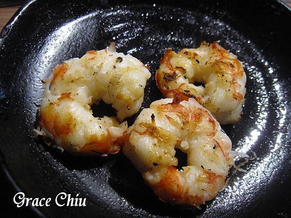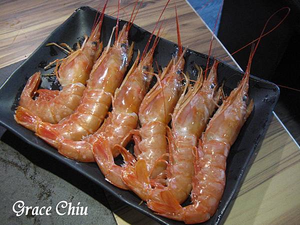 額外加贈的巨無霸天使紅蝦(每人三隻),號稱巨無霸個頭一定要有看頭,六隻一放上去就把烤爐範圍給佔滿,肉質比一般天使紅蝦要來的紮實些.