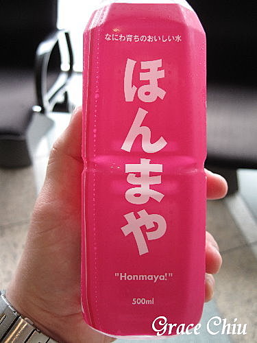 去年在逛大阪歷史博物館看到販賣部在賣Honmaya水,還標著大阪好喝的水,於是就給它買來喝一下~^^(Honmaya為大阪方言,為”這是真的嗎”之意),日本的水打開水龍頭就可以直接生飲,但直接把水裝在瓶子裡當瓶裝水販售可是大阪的創舉(瓶裝水因保存問題有多加一道加溫殺菌手續),把水龍頭流出來的水裝瓶販售,是大阪市對大阪水質的自信表現唷,一瓶日幣100元.